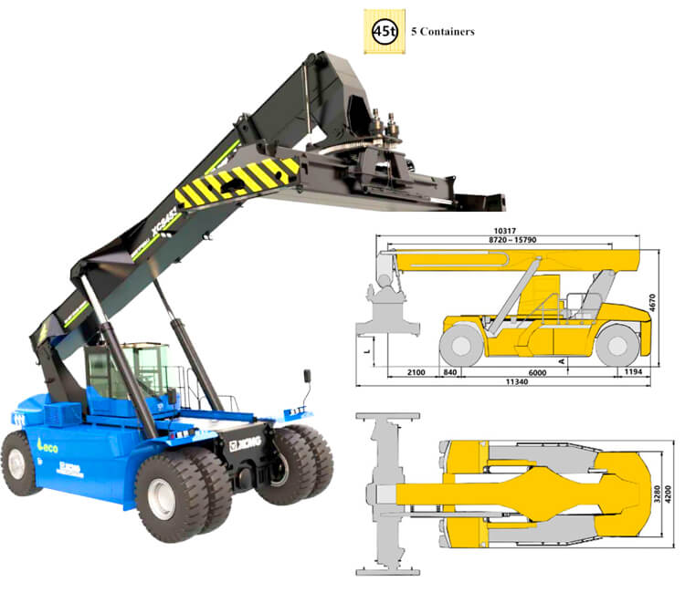 4. Easy maintenance: The layout of each component of this xcmg xcs4531e heavy duty reachstackers for sale body has been carefully optimized to facilitate routine inspection, maintenance and replacement. The maintenance points of key components such as the hydraulic system, engine, chassis, etc. are designed to be very easy to access, greatly reducing maintenance time. The simplified maintenance process not only reduces operating costs, but also greatly extends the service life of the equipment.